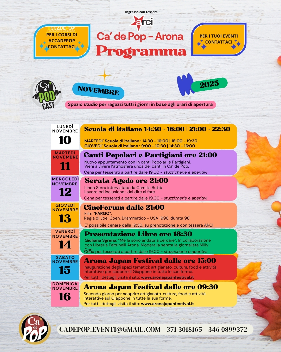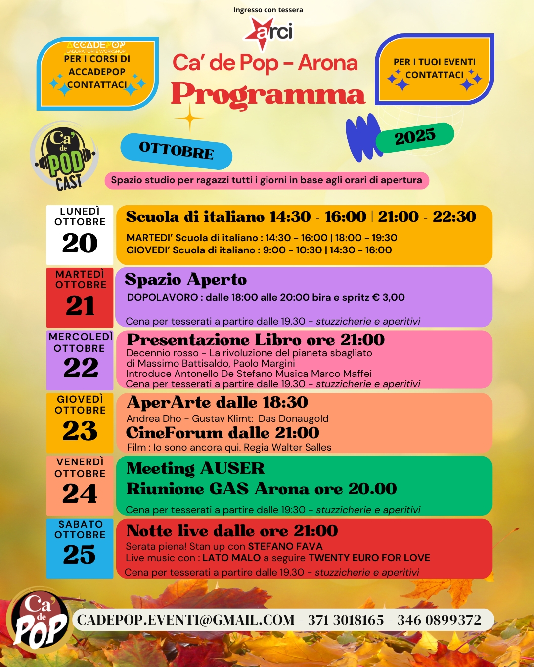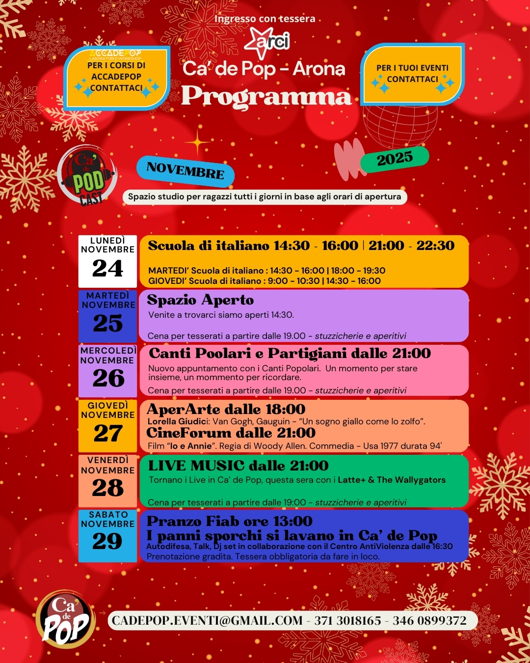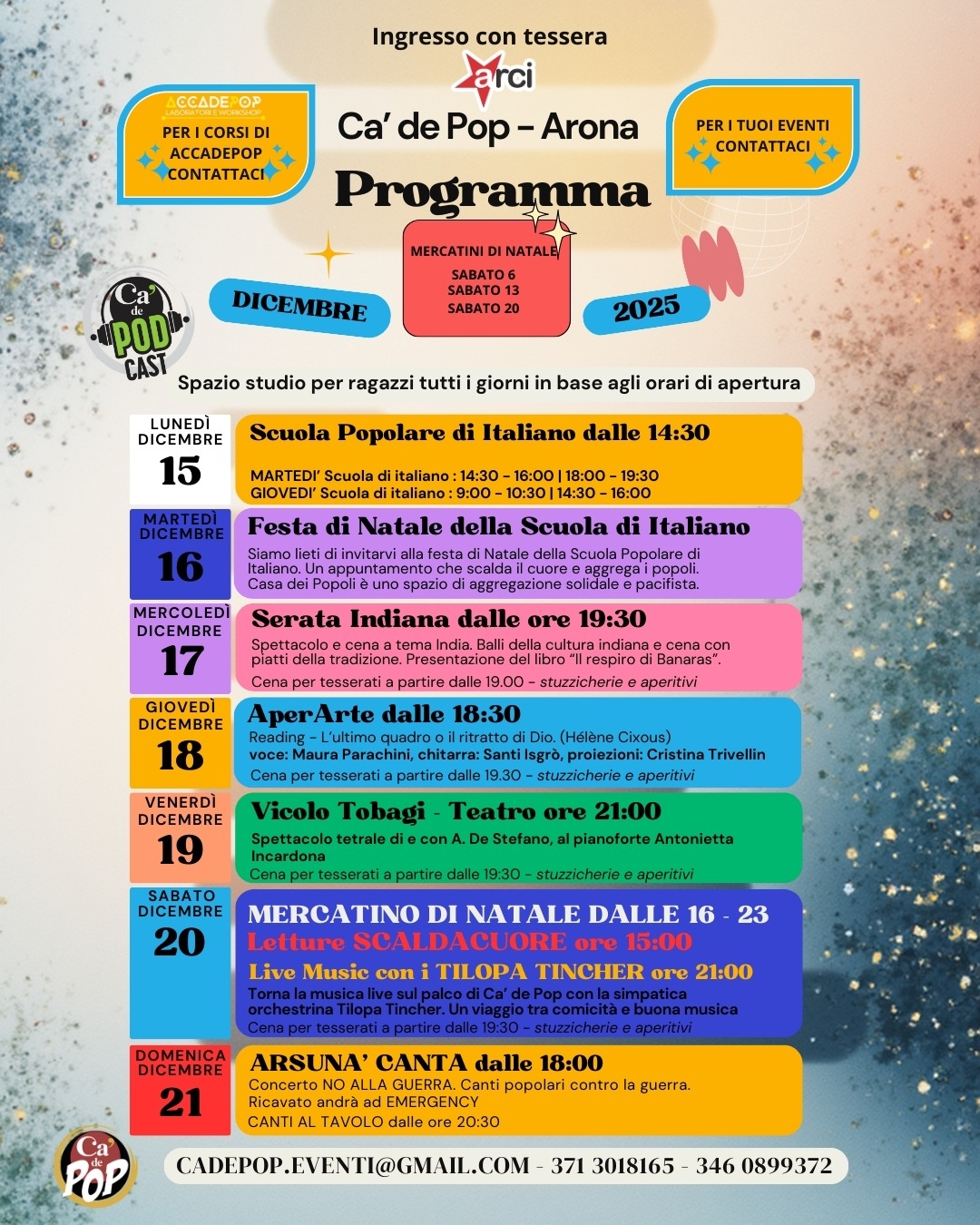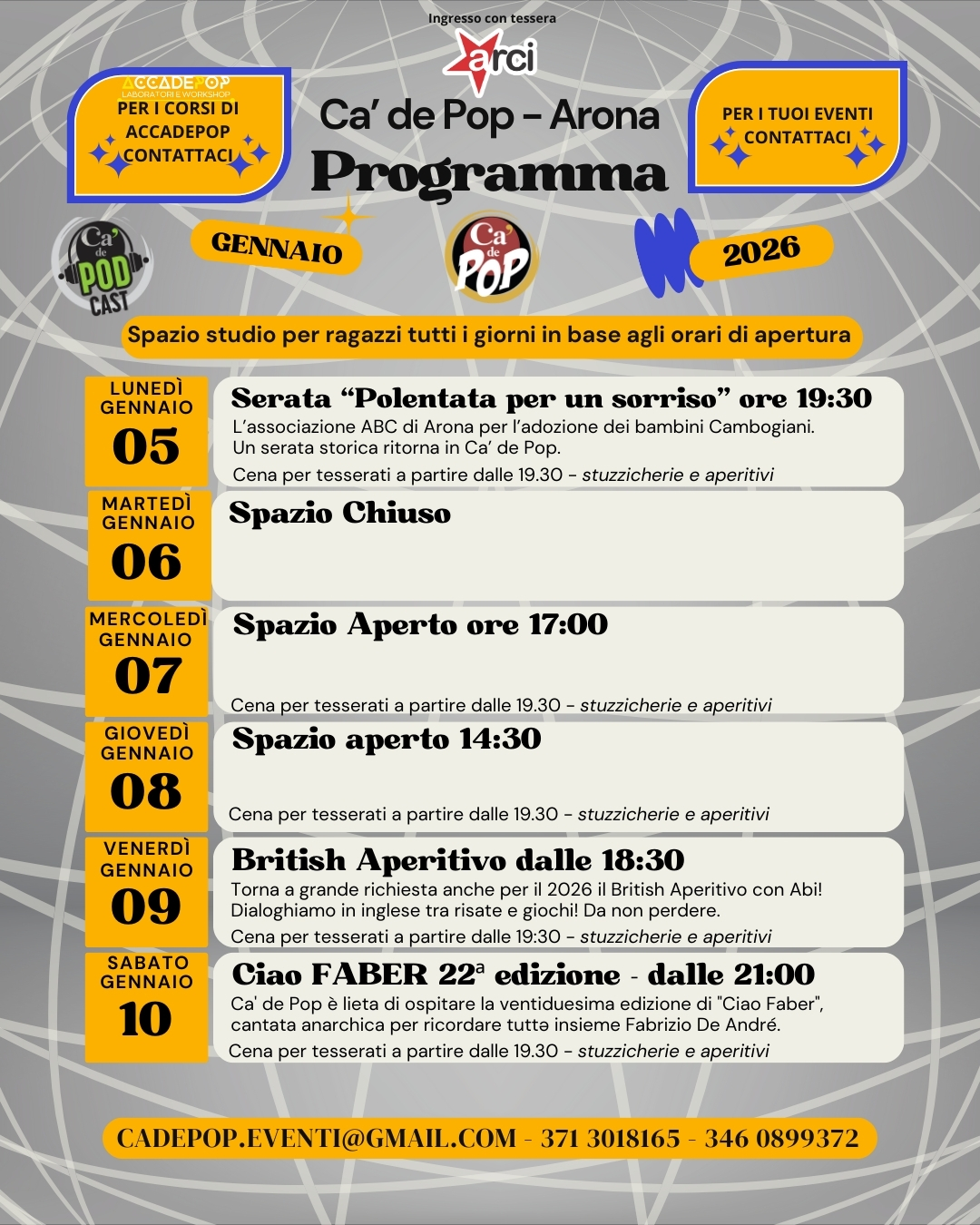 10/01/2026 Ciao Faber 22ª edizioneAperitivi in ingleseSettimana 05-10/01/2026Canti popolari partigiani ’25-’26Scuola popolare d’italiano ’25-’2624/12/2025 Tombola Pop!24/12/2025 Vigilia Pop!21/12/202520/12/202520/12/20256-13-20/12/202519/12/202517/12/2025Settimana 15-21/12/2025Scatole di Natale13/12/202511/12/202510/12/2025Settimana 08-13/12/202506/12/202529/11/202528/11/202527/11/2025Programma della settimana 24-29/1115-16/11/202514/11/202513/11/202512/11/2025Programma della settimana 10-16/11/202508/11/202506/11/2025Programma della settimana 03-08/11/2025Giovedì di CineforumaperARTE31/10/202530/10/2025Programma della settimana 27/10-01/1125/10/202523/10/202522/10/2025Programma della settimana 20-25/10/202518/10/202511/10/202508/10/202508/10/2025Programma della settimana 06/10-11/1005/10/202503/10/2025Programma della settimana 22/09-27/0927/09/202524/09/202517/09/202512/09/202505/09/2025Programma della settimana 04/08-09/08Programma della settimana 28/07-02/08Cena in rossoCinema all’aperto09/08/202507/08/202501/08/202529/07/202526/07/202525/07/202505/07/202504/07/202503/07/202502/07/2025Programma della settimana 30/06-05/07