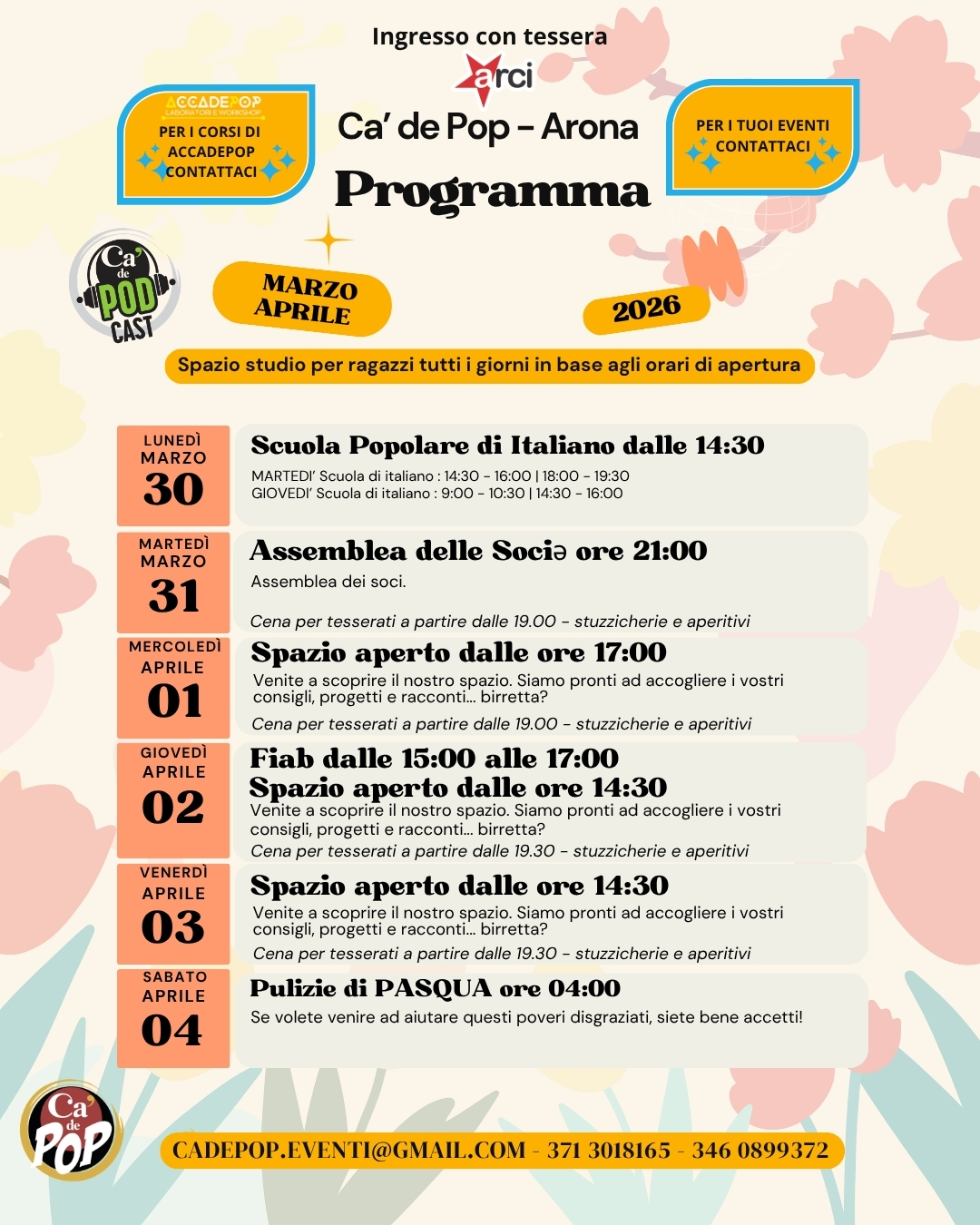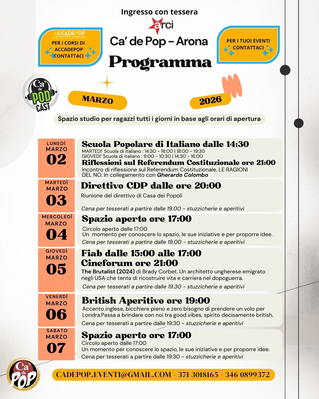 Settimana del 30/03-04/04/2026Settimana del 23-28/03/2026aperARTECanti popolari partigiani ’25-’2620/03/202619/03/2026Settimana del 16-21/03/202614/03/202613/03/202612/03/2026Settimana del 09-14/03/202605/03/2026Aperitivi in ingleseProgramma della settimana 02-07/03/202628/02/202626/02/202621/02/202618/02/2026Programma della settimana 16-21/02/202612/02/202611/02/2026Programma della settimana 09-14/02/202607/02/2026Aperitivi in ingleseProgramma della settimana 02-07/02/202630/01/2026Programma della settimana 26-31/01/2026Scuola popolare d’italiano ’25-’26Programma della settimana 19-24/01/202617/01/202616/01/202614/01/202610/01/2026 Ciao Faber 22ª edizioneSettimana 05-10/01/202624/12/2025 Tombola Pop!24/12/2025 Vigilia Pop!21/12/202520/12/202520/12/20256-13-20/12/202519/12/202517/12/2025Settimana 15-21/12/2025Scatole di Natale13/12/202511/12/202510/12/2025Settimana 08-13/12/202506/12/202529/11/202528/11/202527/11/2025Programma della settimana 24-29/1115-16/11/202514/11/202513/11/202512/11/2025Programma della settimana 10-16/11/202508/11/202506/11/2025Programma della settimana 03-08/11/2025Giovedì di CineforumaperARTE31/10/202530/10/2025Programma della settimana 27/10-01/1125/10/202523/10/202522/10/2025Programma della settimana 20-25/10/202518/10/202511/10/202508/10/202508/10/2025Programma della settimana 06/10-11/1005/10/202503/10/2025Programma della settimana 22/09-27/0927/09/202524/09/202517/09/202512/09/202505/09/2025Programma della settimana 04/08-09/08Programma della settimana 28/07-02/08Cena in rossoCinema all’aperto09/08/202507/08/202501/08/202529/07/202526/07/202525/07/202505/07/202504/07/202503/07/202502/07/2025Programma della settimana 30/06-05/07
